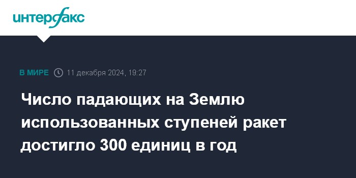Число падающих на Землю использованных ступеней ракет достигло 300 единиц в год