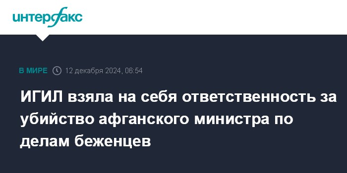 Москва. 12 декабря. INTERFAX.RU - Террористическая организация ИГИЛ (запрещена в РФ) взяла на себя ответственность за убийство министра миграции талибов (движение "Талибан", запрещено в РФ) Халиля Хаккани, сообщает информационное агентство Aamaj News.