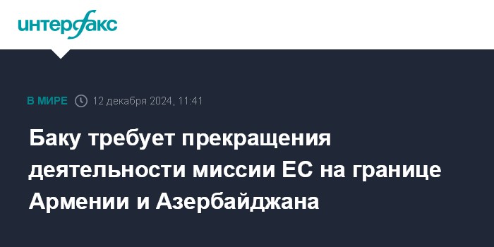 Баку требует прекращения деятельности миссии ЕС на границе Армении и Азербайджана