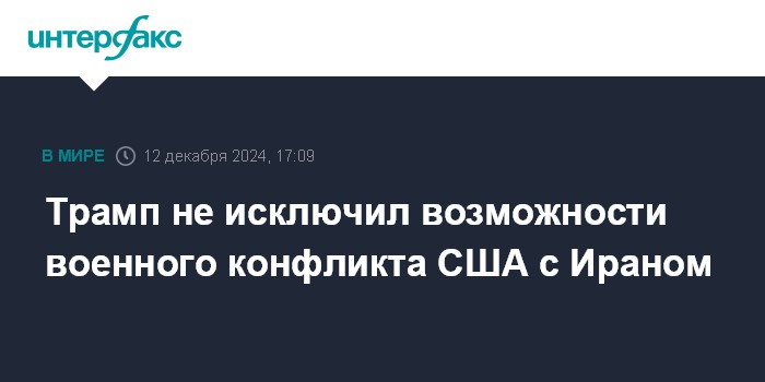 Москва. 12 декабря. INTERFAX.RU - Избранный президент США Дональд Трамп не исключил, что между Соединенными Штатами и Ираном может произойти военный конфликт.