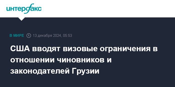 США вводят визовые ограничения в отношении чиновников и законодателей Грузии