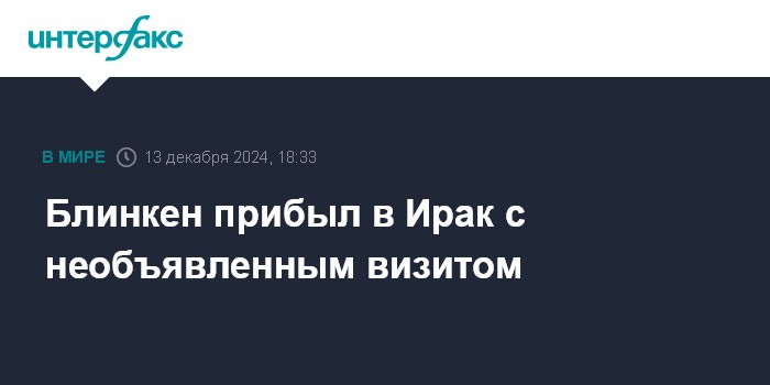 Москва. 13 декабря. INTERFAX.RU - Госсекретарь США Энтони Блинкен в рамках турне по Ближнему Востоку прибыл в Ирак с необъявленным визитом, чтобы обсудить с премьер-министром Ирака Мухаммедом Шиа ас-Судани ситуацию в регионе, сообщает AP со ссылкой на Госдепартамент.
