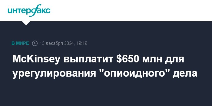 McKinsey выплатит $650 млн для урегулирования "опиоидного" дела