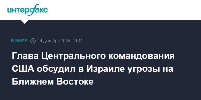 Москва. 14 декабря. INTERFAX.RU - Глава Центрального командования ВС США (CENTOM) Майкл Курилла в ходе визита в Израиль обсудил с израильским военным руководством вопросы региональной безопасности, включая Сирию.