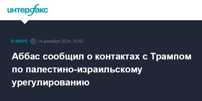 Москва. 14 декабря. INTERFAX.RU - Глава Палестинской национальной администрации (ПНА) Махмуд Аббас заявил, что контактировал как с действующим президентом США Джо Байденом, так и с избранным президентом Дональдом Трампом по вопросу о палестино-израильского урегулирования.