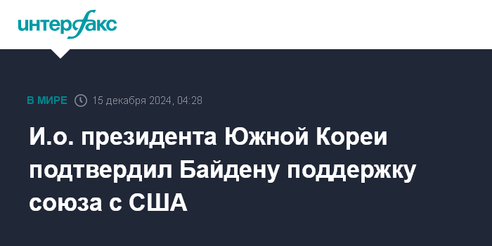И.о. президента Южной Кореи подтвердил Байдену поддержку союза с США