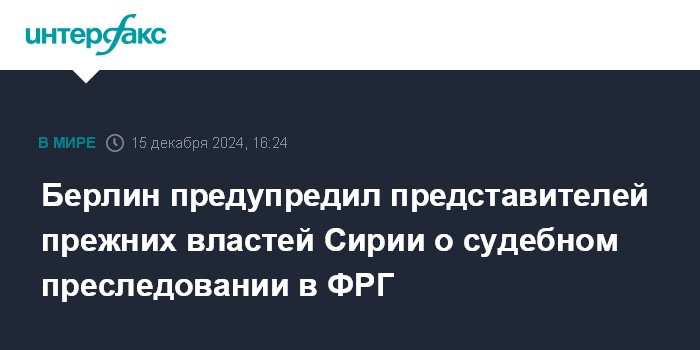 Берлин предупредил представителей прежних властей Сирии о судебном преследовании в ФРГ