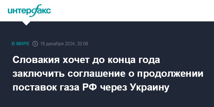 Словакия хочет до конца года заключить соглашение о продолжении поставок газа РФ через Украину