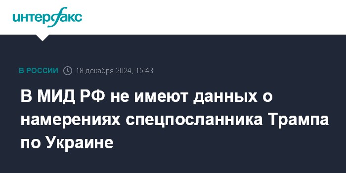 В МИД РФ не имеют данных о намерениях спецпосланника Трампа по Украине