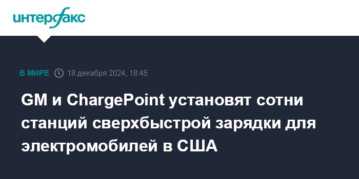 Москва. 18 декабря. INTERFAX.RU - General Motors Co. (GM) и ChargePoint Holdings Inc. совместно займутся развитием зарядной инфраструктуры для электромобилей в США.