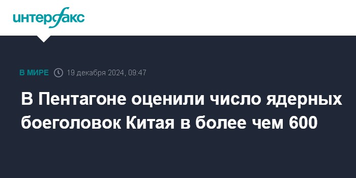 Количество имеющихся сейчас у КНР ядерных боеголовок приводится по состоянию на середину 2024 года. В прошлогоднем докладе указывалось, что Китай располагает более чем 500 ядерными боеголовками.