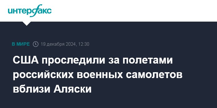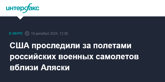 Москва. 19 декабря. INTERFAX.RU - Соединенные Штаты Америки накануне зафиксировали и проследили за полетами четырех российских военных самолетов в зоне опознавания ПВО Аляски (ADIZ), сообщило Объединенное командование аэрокосмической обороны Северной Америки (NORAD).