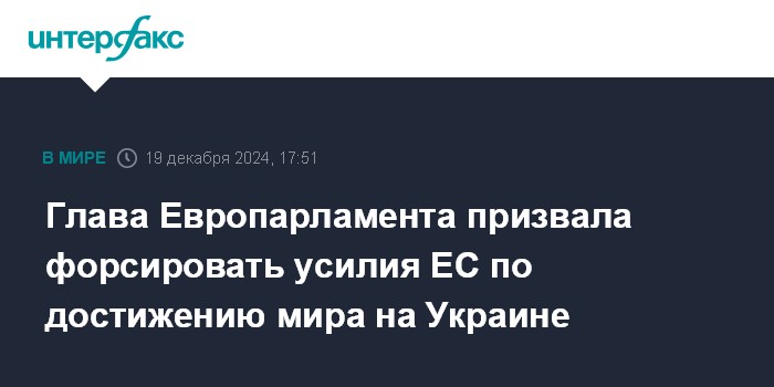 Москва. 19 декабря. INTERFAX.RU - Председатель Европейского парламента (ЕП) Роберта Метсола призвала на саммите ЕС активизировать усилия Евросоюза по продвижению к миру на Украине.