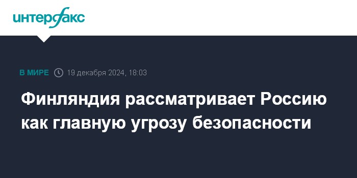 Москва. 19 декабря. INTERFAX.RU - Финляндия рассматривает Россию как главную угрозу безопасности и считает, что ситуация может быстро ухудшиться, говорится в первом после вступления страны в НАТО докладе об обороне.