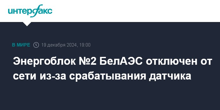 Москва. 19 декабря. INTERFAX.RU - Второй энергоблок Белорусской АЭС временно отключен от сети из-за срабатывания одного из датчиков, сообщила пресс-служба Минэнерго Белоруссии.