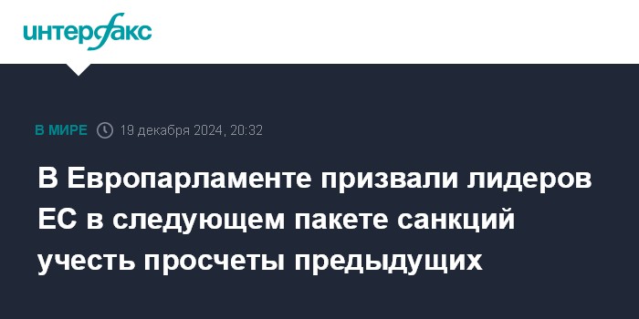 В Европарламенте призвали лидеров ЕС в следующем пакете санкций учесть просчеты предыдущих