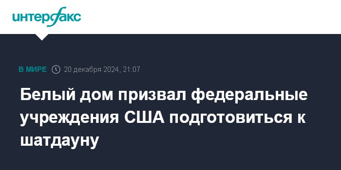 Москва. 20 декабря. INTERFAX.RU - Административно-бюджетное управление США в пятницу предупредило различные федеральные ведомства о необходимости готовиться к приостановке работы правительства (шатдауну), сообщает The Washington Post со ссылкой на источники.